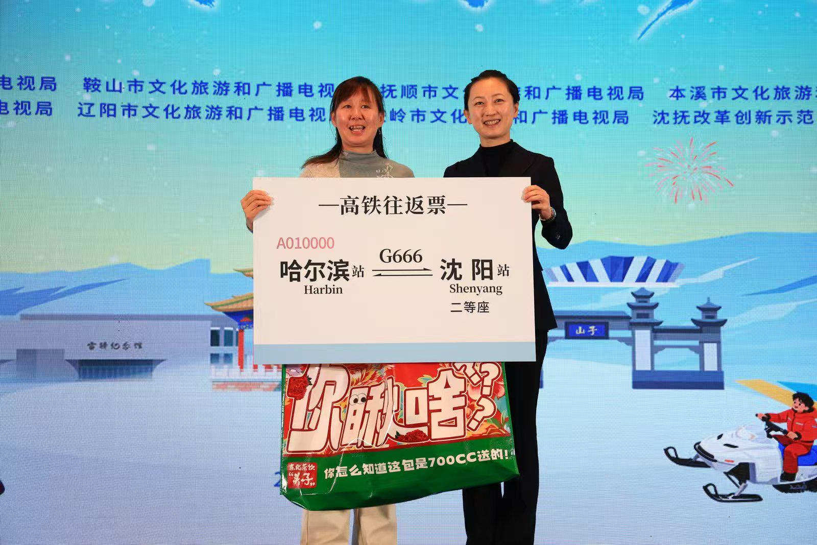 沈阳故宫、张学良旧居陈列馆、金融博物馆、沈阳市植物园等都市圈城市景区门票,哈尔滨-沈阳往返高铁票,玩偶冰箱贴等城市特色文创,鸡架、冷面、山珍等特产美食,滑雪体验券、温泉酒店住宿券……为表达对哈尔滨市民及广大游客的诚挚邀请,本次推介活动特别准备了“文旅大礼包”,通过互动抽奖、现场派送等形式送到观众手中,让哈尔滨“老铁”们直观感受沈阳都市圈的热情与诚意。